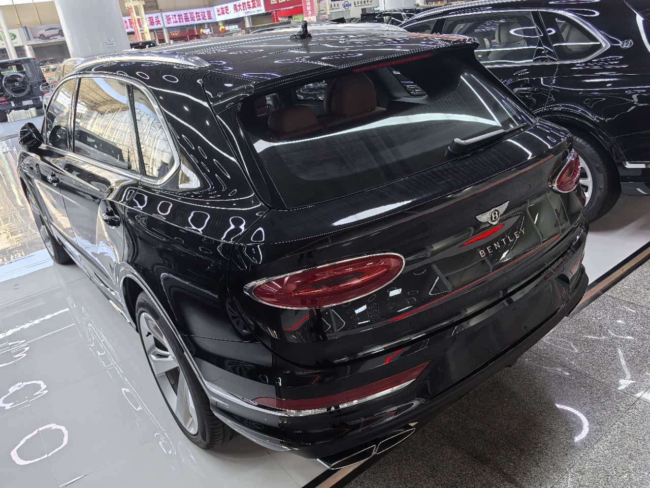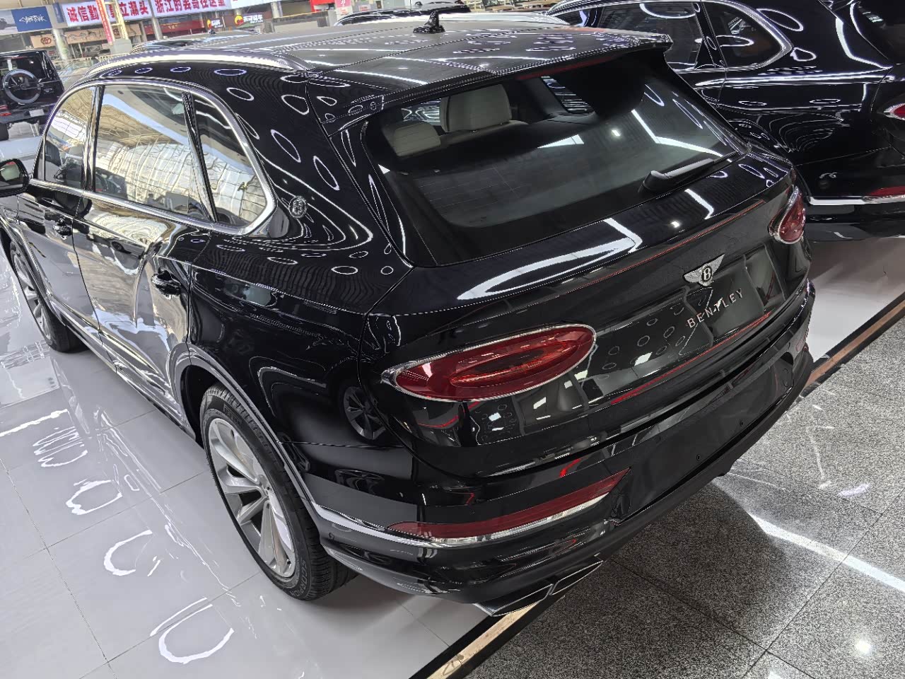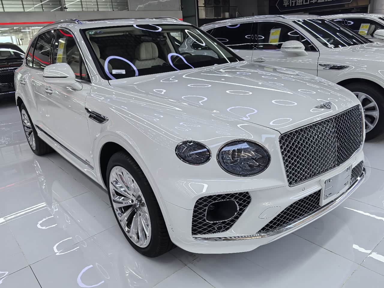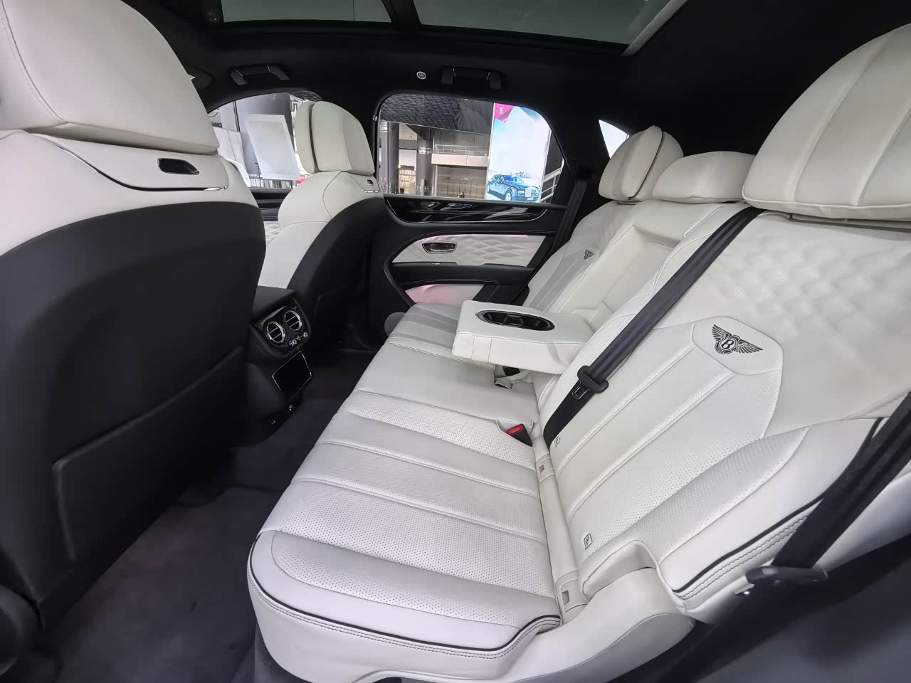 24款宾利.添越 V8标轴 A 版 260增值 外观:宝石黑 内饰:亚麻白/纽马克特褐 选配:22 寸五幅定向铝合金喷漆轮毂 自正式轮毂盖 天然哑光直纹胡桃木饰面板 双色多功能加热方向盘  座椅宾利徽章刺绣  反衬色座椅滚边 反衬色座椅缝线 前排座椅(通风 加热 按摩 )后排折叠桌板  旅行包(雷达测距 夜视 抬头显示) 日期24.12 开票233左右