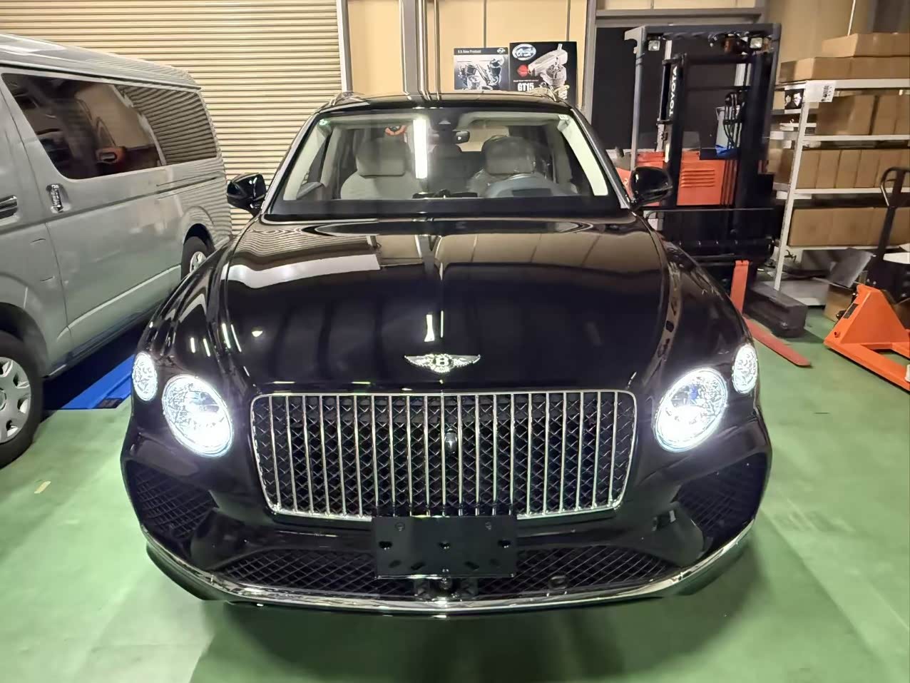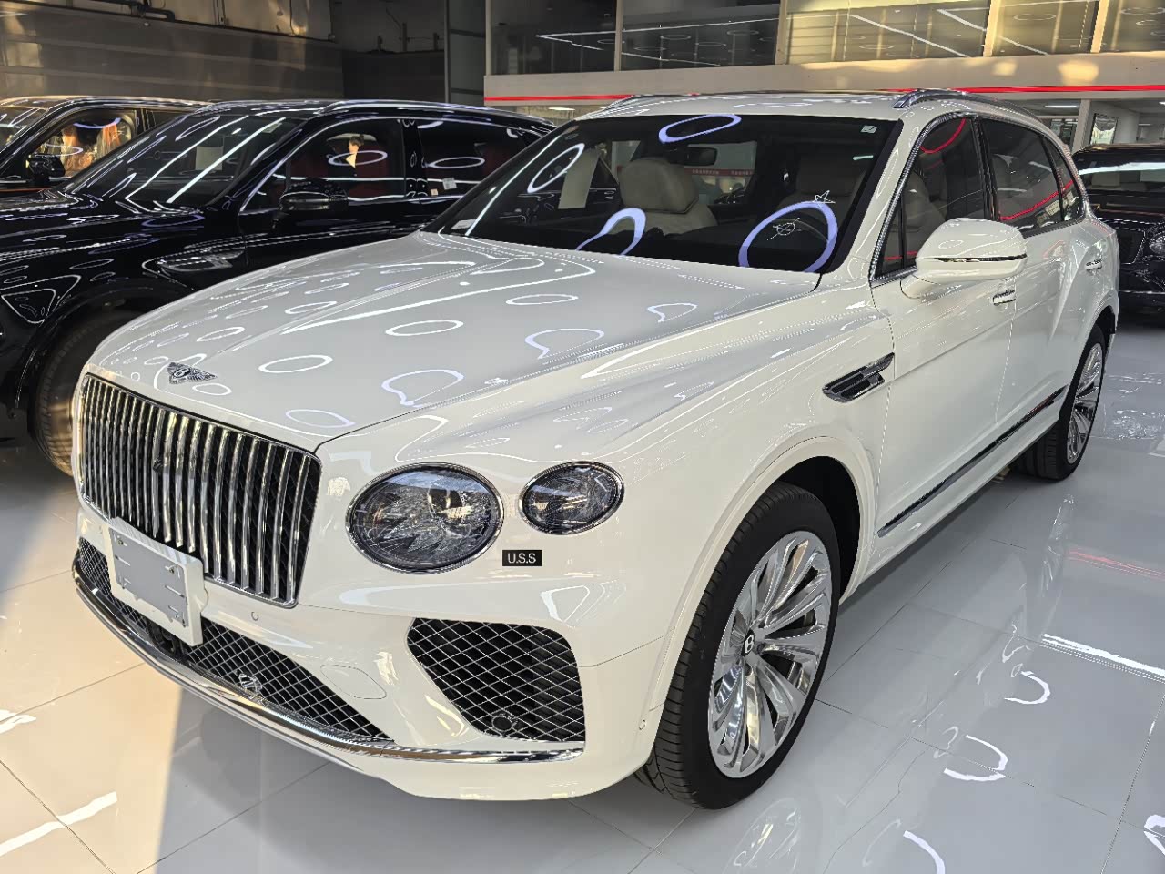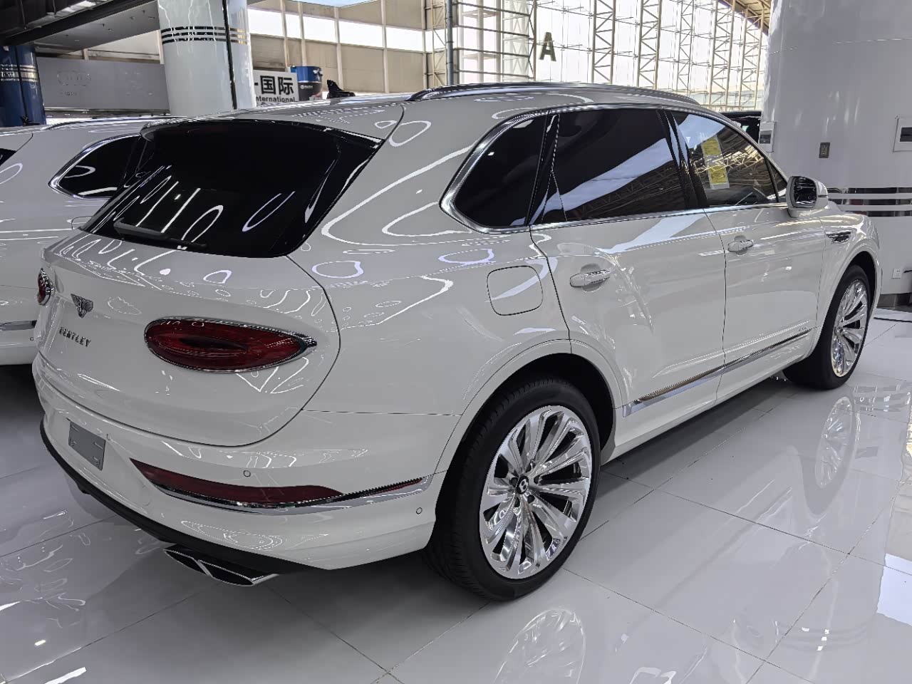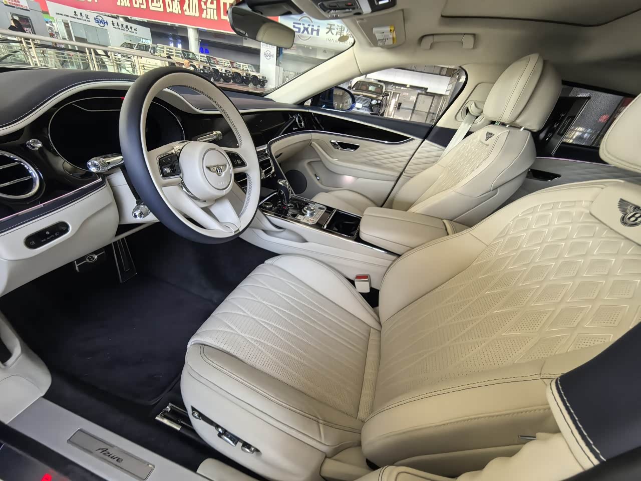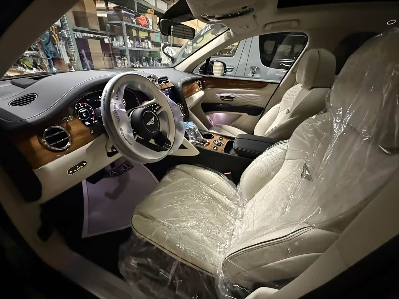 24款宾利.添越 V8标轴 A 版 260增值 外观:宝石黑 内饰:亚麻白/纽马克特褐 选配:22 寸五幅定向铝合金喷漆轮毂 自正式轮毂盖 天然哑光直纹胡桃木饰面板 双色多功能加热方向盘  座椅宾利徽章刺绣  反衬色座椅滚边 反衬色座椅缝线 前排座椅(通风 加热 按摩 )后排折叠桌板  旅行包(雷达测距 夜视 抬头显示) 日期24.12 开票233左右