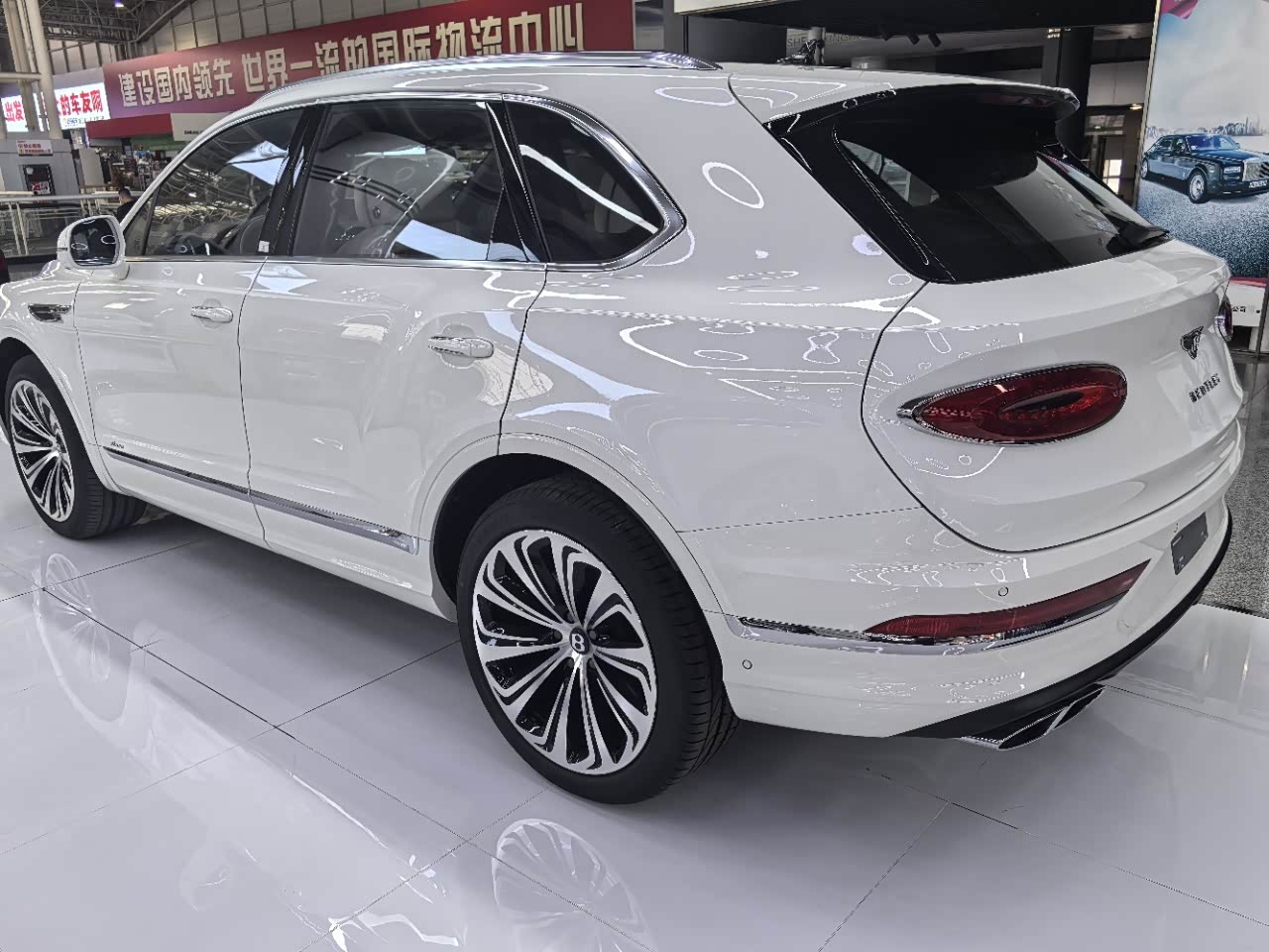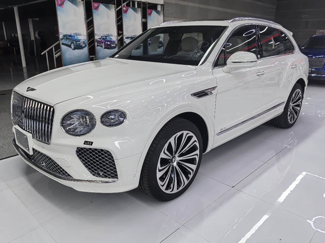 24款宾利.添越加长 雅度版   318增值 外观颜色:冰川白 内饰颜色:亚麻白/鲸鱼黑 双拼内饰 配置:22英寸十辐金属抛光轮毂,后门一键关门,天然哑光深胡桃木,流光菱形格套件,宾利动态驾驶(后轮转向)双色多功能加热方向盘,座椅宾利徽章刺绣,反衬色座椅滚边,自正式轮毂中心盖。 五座 4+1 航空座椅(后座增加腰垫,肩垫和腿托调节,仅4+1座和4座配置可选配,前排副驾驶座后电动足憩踏板,前后排座椅电动头枕,后座车门及中央扶手加热(4+1座时仅中央扶手)  后座按摩升级  后座升级Dinamica材质软枕  右后车门放松模式和商务模式开关按钮  前座椅背木饰面小餐桌(哑光胡桃木) 后排健康座椅(座椅温湿度自动调节及舒逸坐姿)  ①穆勒包(22寸机械切割轮毂,三维立体菱形格门板,菱形格座椅,刹车油门B字限量标识,金属机油盖,宝石油箱盖)  ②座椅舒适包(前后排座椅加热,通风,按摩)  ③城市包(360环车影像,盲点监测,路标限速识别,空气净化系统,脚感电尾门)  ④旅行包(雷达测距,抬头显示,夜视系统) 日期24.12
