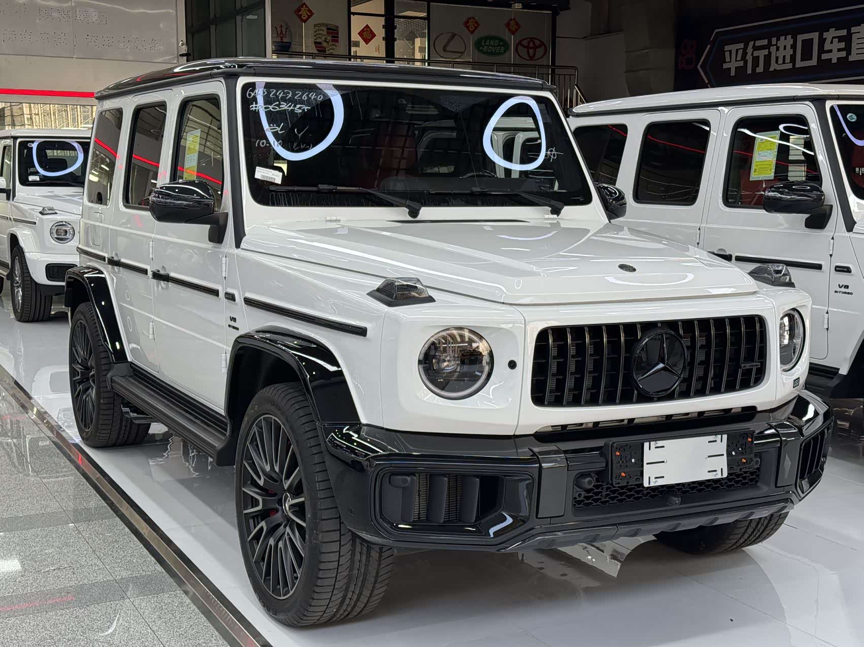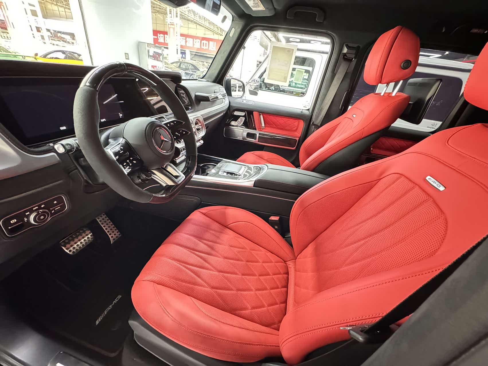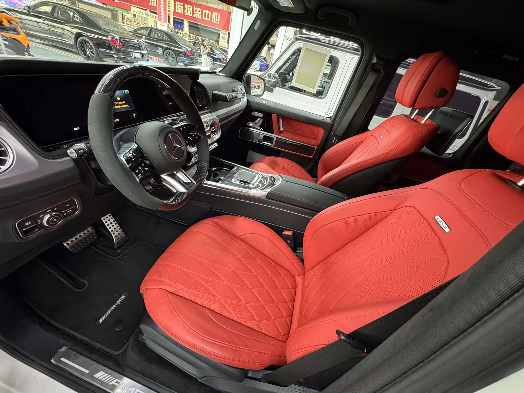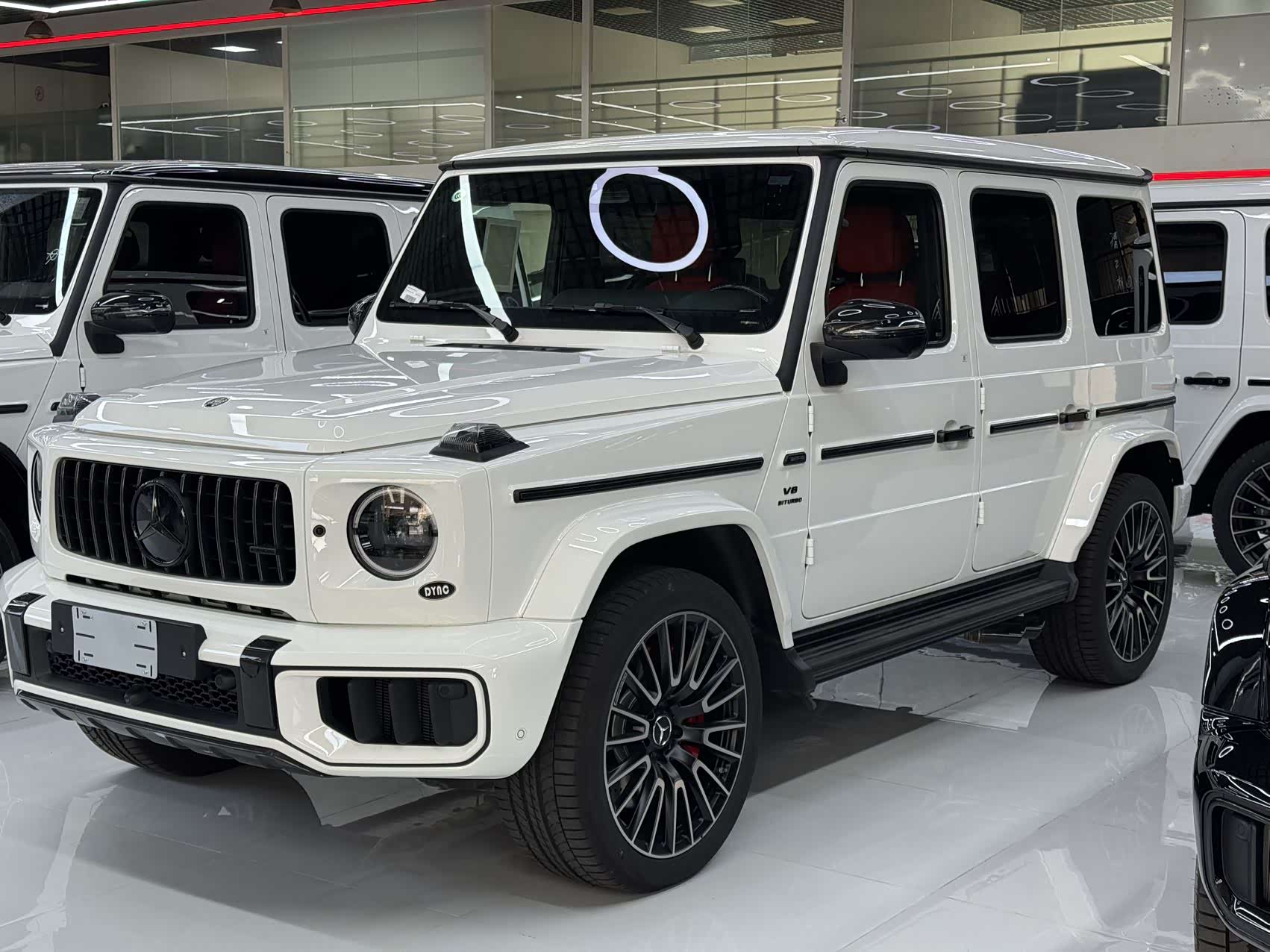 26款欧规G63 三碳熊猫版 328增值 白熊猫/孟加拉红全红 三碳大满配  开票260左右 配置:暗夜包、暗夜增强包、大熊猫配色(黑杠、黑轮眉、黑顶)、22寸新款V型熏黑轮毂、红色卡钳、碳纤维外观包、碳纤维方向盘、碳纤维内饰、性能包(A22主动行驶控制新款电磁悬架、赛道速度模式)、孟加拉红菱形格内饰(通风、按摩、主动式多轮廓座椅)、双色仪表组件(全红内饰)、舒适组件(无钥匙进入、冷热杯架、手机无线充电)、温暖组件(方向盘加热、挡风玻璃加热)、球形电子拖钩、隐私玻璃、副驾拉手签名等。