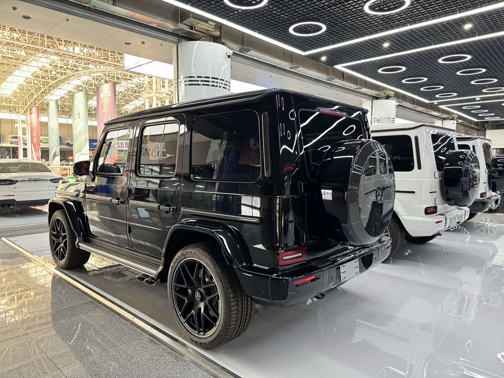 25款欧规G63 三碳满配 313增值 配置:三碳(碳纤维内饰、碳纤维外观包、碳纤维方向盘)、暗夜包、22寸轮毂、舒适包(无钥匙进入、车库门可编程、温度可调节杯架、 前无线充电)、电磁悬挂功能、后娱。