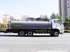 上装与洒水系统(核心配置) 罐体系统 容积:有效容积 18–22m³,4–5mm 优质碳钢,三道防波板满焊,封头自动焊,内防腐处理,密封性好。 附件:全车大通径球阀,前置进水口,底部排污阀,消防接口 + 滤网,可自吸自排。 洒水系统 洒水泵:50/60 型专用洒水泵,自吸高度≥7 米,前冲宽度≥16 米,水炮射程≥32 米。 作业功能:前冲、后洒、侧喷、高位花洒、尾部绿化水炮,可调节柱状 / 雾状,适配多场景作业。 可选配置 加装 30–40 米雾炮,适配工地降尘、消毒作业;选装气控驾驶室一键操作,提升效率。