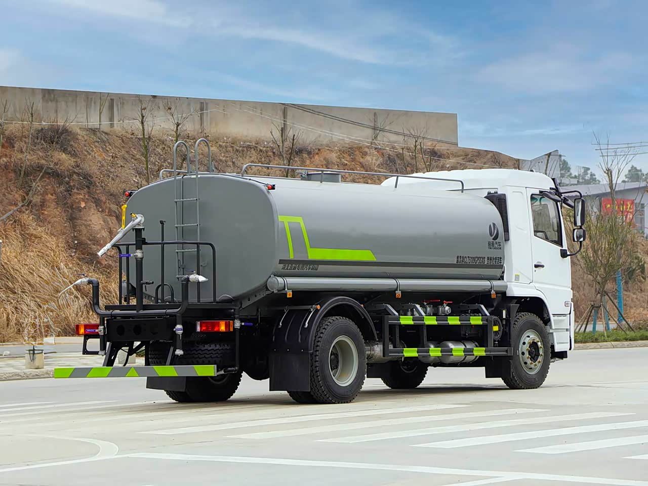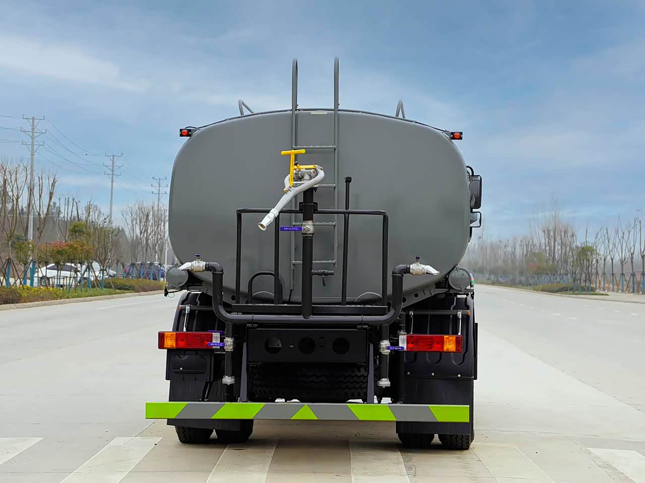 上装与洒水系统(核心配置) 罐体系统 容积:有效容积 14.7–15m³,4mm 优质碳钢,两道防波板满焊,封头自动焊,内防腐处理,密封性好。 附件:全车大通径球阀,前置进水口,底部排污阀,消防接口 + 滤网,可自吸自排。 洒水系统 洒水泵:60/90 型专用洒水泵,自吸高度≥6 米,前冲宽度 14–16 米,水炮射程≥30 米。 作业功能:前冲、后洒、侧喷、高位花洒、尾部绿化水炮,可调节柱状 / 雾状,适配多场景作业。 可选配置 加装 30–40 米雾炮,适配工地降尘、消毒作业;选装气控驾驶室一键操作,提升效率。