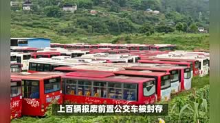 公交封存场:停放上百辆报废的前置公交车,强制60万公里报废