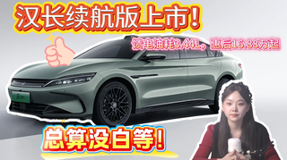 总算没白等!汉长续航版上市,馈电油耗3.44L,惠后16.88万起