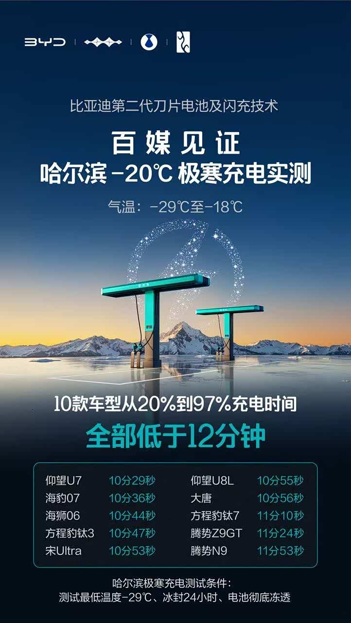 比亚迪第二代刀片电池与闪充技术,真正实现了油电同速的补能体验,全球量产最快的1500kW闪充桩,配合全新电池技术,5分钟即可完成10%-70%充电,9分钟充至97%,甚至在零下30度也仅需12分钟,我觉得这真的是新能源充电史上大跃进的一步,这一系列硬核闪充技术树立行业新标杆,让续航焦虑成为历史。 更值得关注的是,比亚迪并未止步于单纯的充电速度提升,而是通过储充一体系统,巧妙地突破电网容量限制,将充电桩转化为电网的功率放大器,实现了对社会电网的友好互动,我认为这种兼顾用户体验与社会责任的系统性解决方案,展现了技术创新的深度与远见,真正做到推动行业进步的作用。