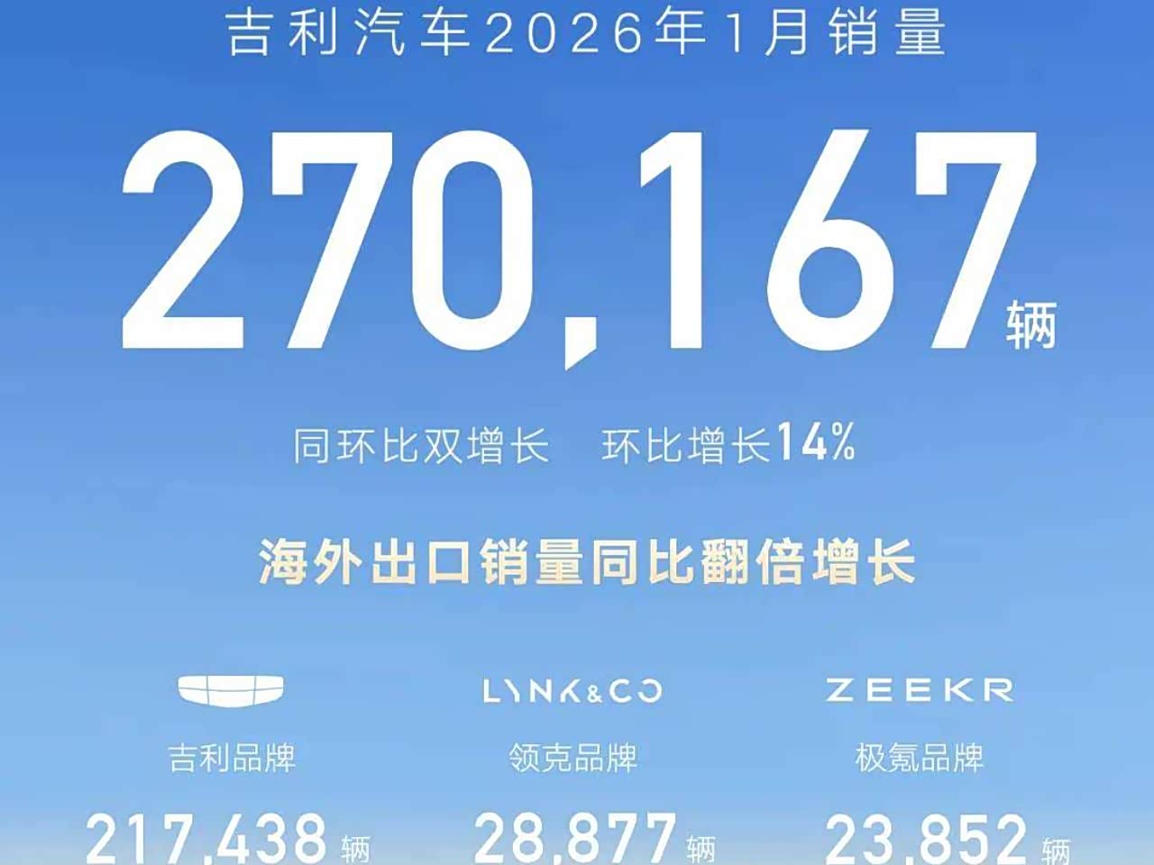 “一个吉利”聚势向上,吉利汽车1月销量27万辆,海外翻倍增长