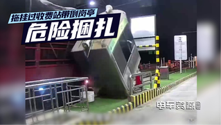 危险捆扎惹祸!拖挂过收费站直接刮倒岗亭