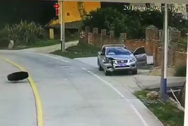 飞来横祸 车主吓懵了
