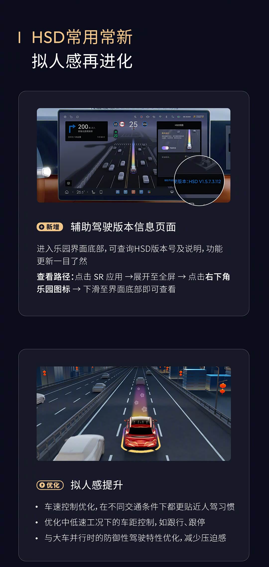 春节返乡简直是智驾大考:高速被大车夹着不敢动、乡镇小路窄到怀疑人生、老家车位小到想弃车…真的越开越心累!😤 地平线HSD V1.5 OTA来得及时,端到端技术,大车避让、防御性驾驶专治各种心慌,窄位泊车一把入库,再也不用来回倒八遍。 不仅好用还会整活,新春SR特效+座舱氛围感拉满,返乡路上终于不用当苦行僧了! 智驾够给力,回家才体面,这波必须夸!