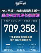 吉利一季度销量70.9万辆,重回自主汽车品牌第一!