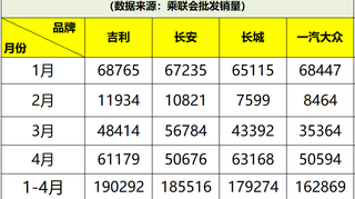 【自主一哥之争】5月6日,吉利与长安不约而同的发布了4月销量,吉利汽车总销量105468辆,长安系中国品牌(含轻卡、微面等商用车)销量119435辆。如果扣除掉长安凯程(皮卡属于商用车)的31129辆,长安自主品牌4月销