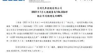 2月8日,吉利公布了2021年1月销量数据:1月销量156326辆,同比增长约40%。其中,帝豪轿车24600辆,博越家族1月销量30197辆,星瑞单月销量达14160辆。领克03顺利破万,助力领克汽车1月销量达到25501辆,连续七个月刷新领克品牌历史最高月销量纪录。