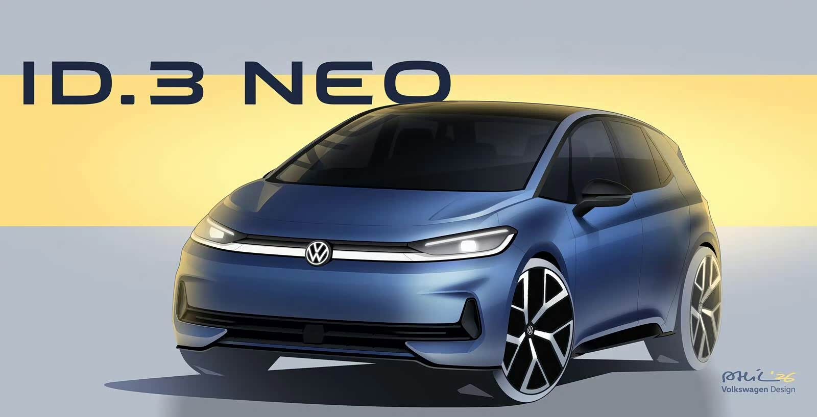 新款大众ID.3预告图,更名ID.3 Neo,将于4月中旬全球首发#大众id.3#