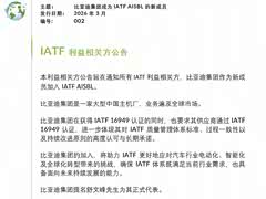 新能源首家!比亚迪正式加入IATF,树立全球产业发展标杆!