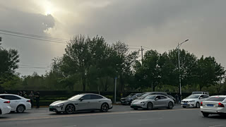 北京车展门口的双胞胎。那能问题来了:哪辆是小捷?哪辆是保时米?