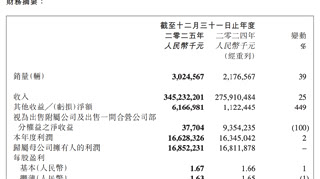 吉利汽车2025年财报,营收3452亿元,净利润144亿元。