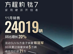 方程豹钛7:11月又卖了24019辆!夺混动/方盒子销量双冠军