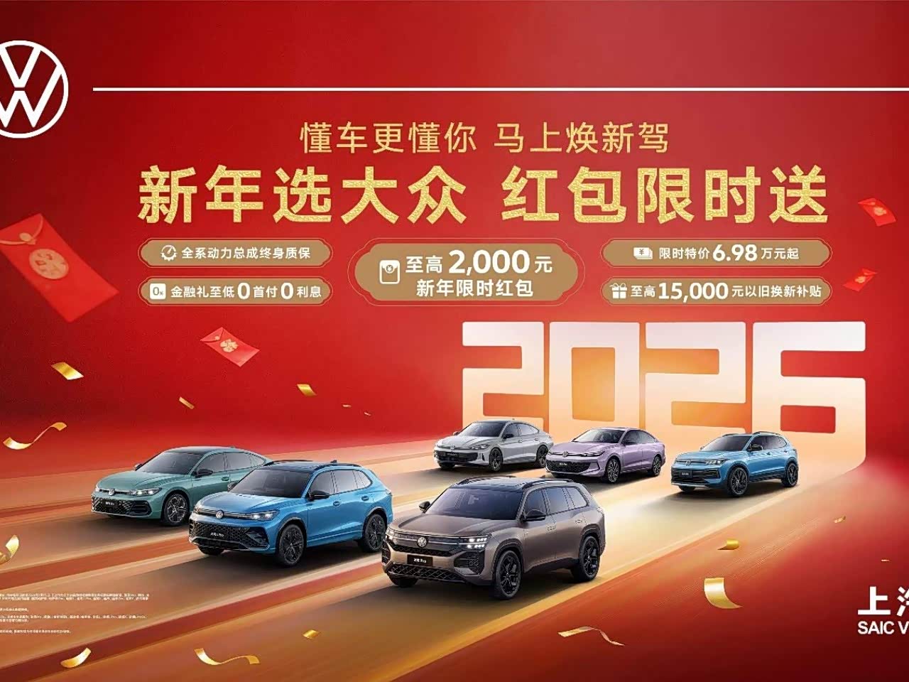 上汽大众品牌新年“马上加礼” 2,000元新年红包限时领!