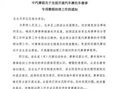 中汽摩联发布赛车专项整顿治理通知,近期赛事均被暂停