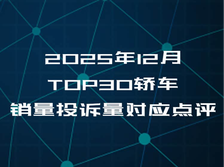 2025年12月TOP30轿车销量投诉量对应点评