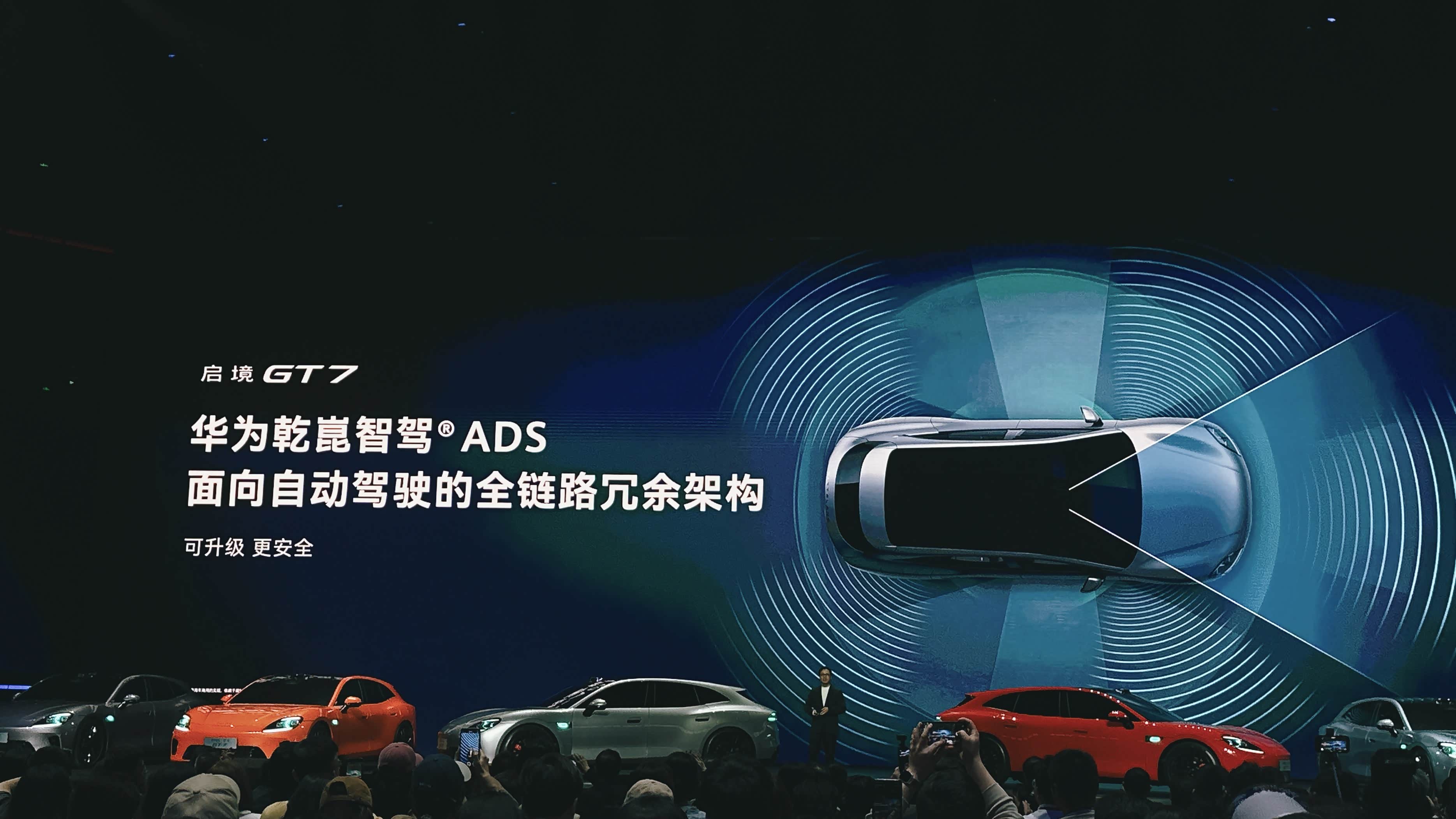 华为与广汽联合打造的高端智能新能源品牌——启境,正式迎来旗下首款车型GT7的全球首秀。 智能化是GT7最大的牌面。它首发搭载了全球量产最高的896线固态激光雷达,在10%反射率条件下,30厘米高度的障碍物最远识别距离达到162米,14厘米的小目标也能在120米外稳定识别,低反射率障碍物的识别能力提升了近两倍。硬件层面已经支持L3级自动驾驶架构,等法规落地就能通过OTA解锁。座舱方面搭载的是鸿蒙座舱5.0,华为全家桶用户应该会很有亲切感。而且首发搭载新一代小艺智能体,情绪价值和智能体验直接拉满。底盘是另一个值得说的点,GT7首发搭载了HUAWEI XMC乾崑数字底盘引擎,支持"五维运动矢量控制",三电机与悬架、转向系统深度协同。渠道方面,启境走了一条独立路线——不进入华为门店,完全自建渠道。官方称上市前将完成全国70城超300家门店布局。还有在发布会上还致敬了苹果的“ONE MORE THING",邀请到了黄景瑜作为启境汽车的全球代言人,带给人惊喜,也更加明确了用户画像。