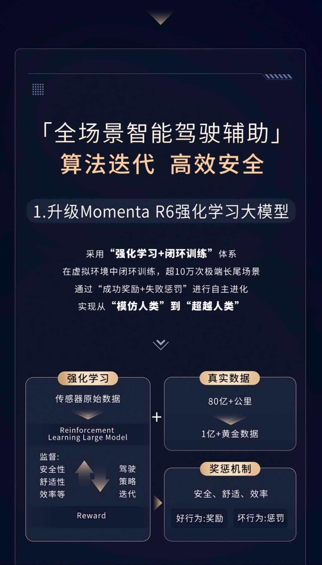 铂智3X上市一年,累计销量突破8万台,连续5个月合资新能源销冠。3月18日,OTA 3.0来了。 核心升级:Momenta R6强化学习大模型正式上车,免费覆盖全量车主,包括老用户。R6相比之前的5.0加入了强化学习算法,系统有了"自主进化"能力,避险效能直接提升10倍。 以前被吐槽最多的"一惊一乍"问题解决了——加塞、汇流、鬼探头,系统判断更贴近老司机习惯,动作衔接自然。新增智驾单次行程报告,开完一段路系统怎么判断的都能看到,从"用了"到"为什么这么开"都能看明白。 座舱新增6个AI助手,AI旅行家车上直接规划行程,AI电台一句话生成私人频道。20+微信小程序上车,一句话点咖啡,你和咖啡同时到公司。安全升级:长时间脱手提前提醒,必要时安全靠边停车。 硬件底子:254TOPS英伟达Orin-X,27个传感器含激光雷达,版权益价13.98万起。不过1月销量滑到2236台,比亚迪元PLUS、银河E5来势汹汹,15万级纯电市场最卷。年内还规划ETC自动通过、停车场智慧寻车。从"性价比黑马"到"智驾实力派",合资品牌之前没走过的路,铂智3X正在走。#铂智3X# #丰田铂智3XOTA3.0#