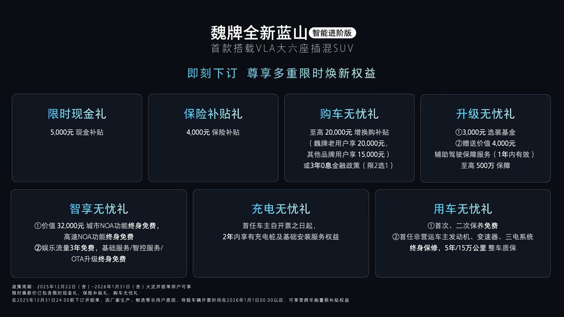 蓝山把VLA辅助驾驶大模型上车了,不过AES和RAEB要到明年Q2。 嘴上说着不打「价格战」,但身体好像「很诚实」,除了升级VLA,座舱也有进阶,但价格可以算是「不升反降」。 另外Hi4也算是蓝山的杀手锏了。 CLTC综合续航1343km,纯电CLTC续航263km;零百加速4.9s,80-120km/h是3.3s;四挡直驱馈电油耗6.5L/100km;轴荷比50:50。 再有就是升级了电控减震器,可以预瞄,然后调整阻尼。 长城这波儿「猥琐发育」还是可以的[并不简单]
