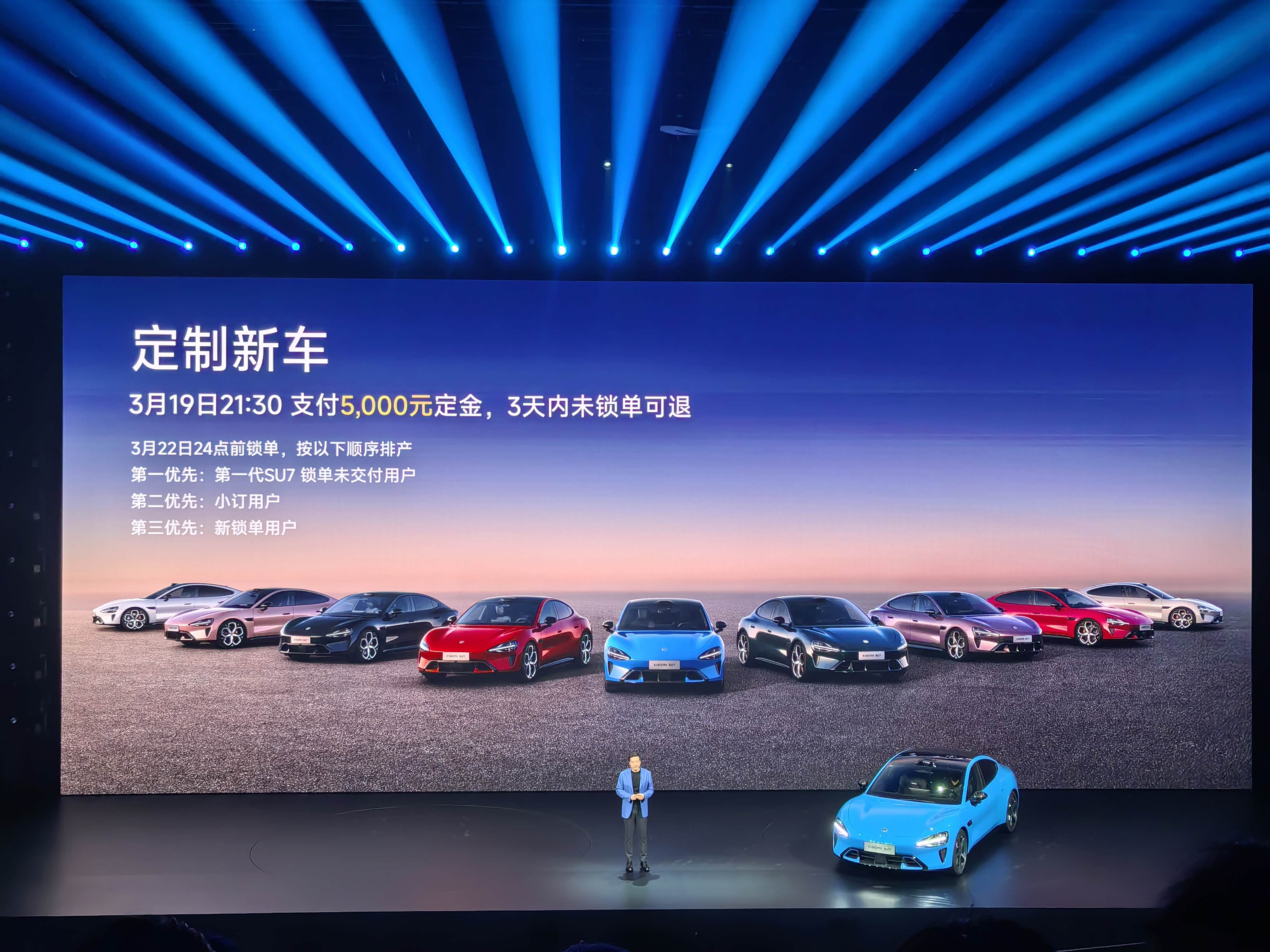 新一代小米SU7上市,售价21.99万-30.39万,5月5日24点前下定送四万多的配置,Max版送六万多配置,专属碳纤维和黑化套件 新规则,5000元定金,锁单可以限时改选配,但是不能改车型,还可以选准现车,2万元定金锁单。 Pro版CLTC续航902公里,标准版720公里,Max版835公里,全系较现款提升明显。标准版、Pro版本是752V平台,Max版是897V平台,Max版支持15分钟补能670公里,搭载V6s Plus超级电机,全系标配9安全气囊(新增后排侧气囊) 外观变化不大,机械门把手回归,车头微调,整合毫米波雷达,新款21寸锻造梅花轮毂。内饰改动略大,换成了双色方向盘,中控四个实体按键换成金属拨杆,手机充电位重新设计,杯架由竖向改为横向。 座椅强化了舒适感,全系标配十八项座椅调节,副驾零重力座椅,后排坐垫加厚,新增睡眠头枕。卡布里蓝、靛石绿、赤霞红新车色,现在全系有9色可选,新增暗夜黑主题内饰。 标配激光雷达,700 TOPS算力芯片,升级XLA认知大模型,支持复杂场景决策。老款空气悬架+CDC只有Max版才有,这代Pro版和Max版全系标配双腔空悬+CDC。