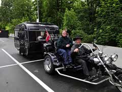 这个真的很机车哎! 三轮赛道摩托车与拖挂房车的组合