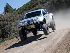 【玩法】在北美改装越野车有一个很热门的改法,安装一套Long Travel Kit(图五)悬挂大幅度提高悬挂行程,经过这样的改装之后的车可以做一些类似Baja1000里的飞越动作。原厂车中新款猛禽原厂悬挂就提供了较长的行程,所以可以做一些简单的飞越动作。