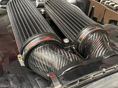保时捷卡宴升级Armaspeed高流速进气系统,双滤芯设计可降低进气阻力,碳纤维管道+盖板,可以隔绝热量,降低进气温度。配合德国TECHTEC动力改装程序,可以提升更多动力。