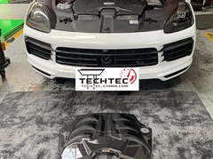 保时捷卡宴升级Armaspeed高流速进气系统,双滤芯设计可降低进气阻力,碳纤维管道+盖板,可以隔绝热量,降低进气温度。配合德国TECHTEC动力改装程序,可以提升更多动力。