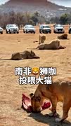 南非狮子园,游客被关在车里,近距离投喂狮子