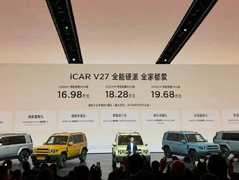 iCAR V27上市,售价16.98-19.68万 方盒子造型的增程中大型SUV,车身尺寸与钛7差不多 搭载34.3kWh 磷酸铁锂电池,CLTC纯电续航210km,综合续航超1200km 辅助驾驶,顶配是猎鹰700+高阶智驾系统,采用地平线征程 6P 芯片,单颗算力达 560TOPS 车顶有些心意,双天幕,别具一格