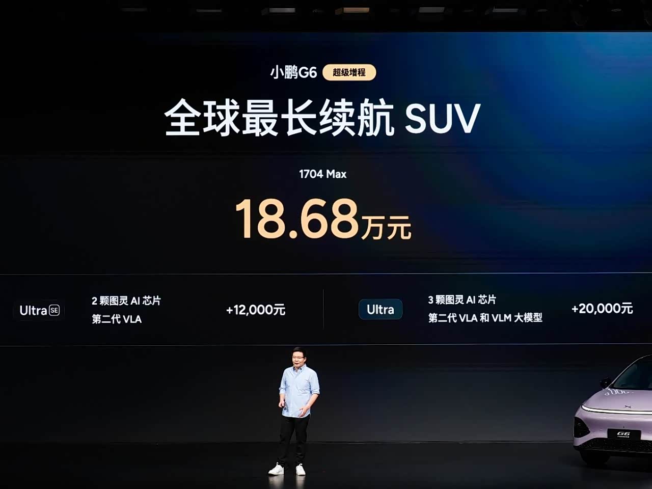 2250tops+1704km续航 小鹏G6超级增程18.68万元上市
