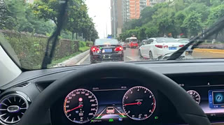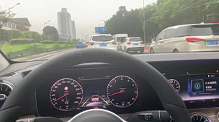 奔驰E级E300L车道保持功能体验,搭配HUD抬头显示还不错