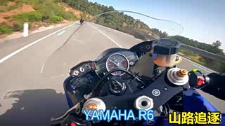 雅马哈R6机车骑士山路追逐,Yamaha R6 摩托车