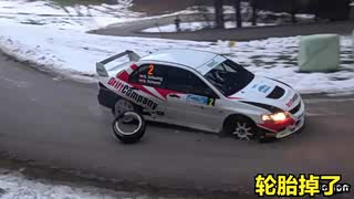 雪地路滑三菱EVO赛车轮胎都跑掉了