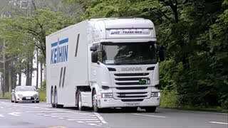 在日本的公路上也有很多国外的货运卡车