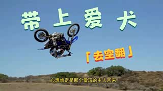 小狗跟主人一块骑摩托表演空翻,开始兴奋不已,最后却后悔莫及。