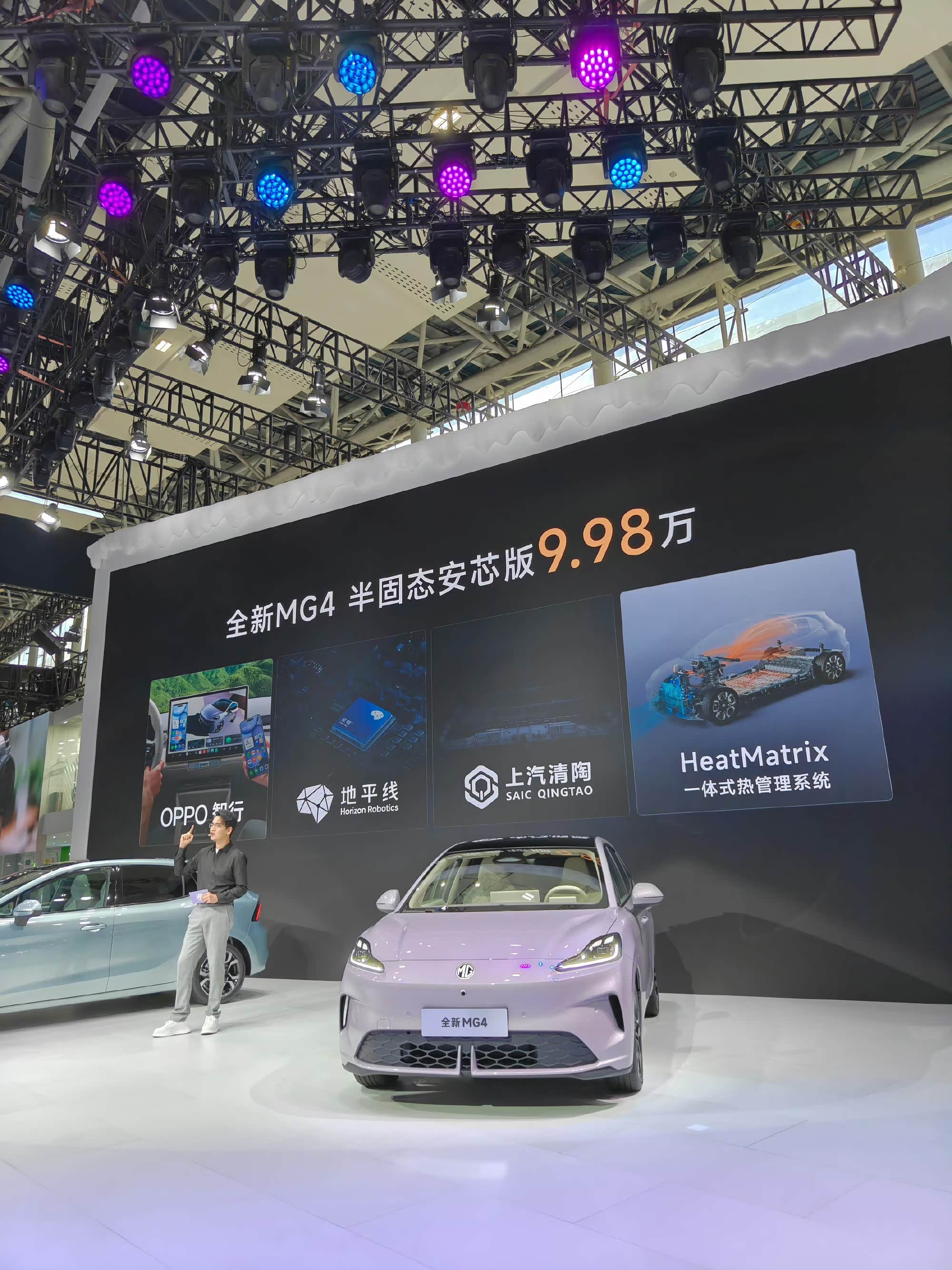 今天车展看到MG4新出的半固态电池版,挺有意思。电池安全性不错,听说穿刺测试不起火。续航530公里,快充20分钟能跑大半程,冬天-35℃也能用。价格9.98万,12月交车。