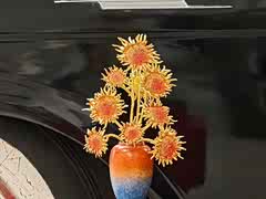 朱炳仁作品:燃烧的向日葵与1959红旗CA72和1966红旗CA770全新原品方向盘金葵花。穿越时空的中国之美相遇在一起是如此的和谐。