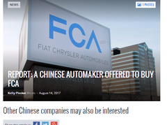 中企要收购菲亚特-克莱斯勒集团?那以后JEEP,玛莎拉蒂,阿尔法罗密欧全是中国的了? 据《汽车新闻》(Automotive News)报道,中国一家汽车制造商的代表本月提出收购菲亚特-克莱斯勒汽车集团 报告中援引一位未具名消息人士的话说,该提议遭到了拒绝,拒绝的原因是因为中企报价太低。多方消息人士表示,其他大型中国汽车制造商正在研究购买FCA。 一名高管表示,FCA高管曾与长城汽车(Great Wall Motor Co .)高管会面,而中国的某些高管上周访问了位于密歇根州的FCA总部。 “我们拒绝置评,”FCA的一名女发言人告诉《汽车趋势》(Motor Trend)。 报告说,中国汽车制造商正面临压力,有关部门要求他们通过收购外国公司来扩大在中国以外的业务。 报告说,根据你所问的匿名消息来源,一大批汽车制造商可能会关注FCA,从东风汽车公司(Dongfeng Motor Corp .)、长城(Great Wall)、浙江吉利控股集团(Zhejiang Geely Holding Group),或FCA目前在中国的合资伙伴广州汽车集团(Guangzhou Automobile Group)。 此前有报道称,广汽正在寻求FCA的帮助,进入美国市场。