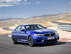 【全新M5杀到 九个重点懒人包】 一、4.4L V8双涡轮引擎的增压器和冷却都是新设计,另也增加燃油喷注压力,动力达到600马力/750牛米; 二、自1984年第一部M5问世以来,第一次推出四驱版,是统名为M xDrive,可以手动选择4WD、4WD Sport或者2WD(纯后驱); 三、M xDrive由一个中央多片式离合器控制前后轴的动力分配,强在可以0-100%无极变换。后轴有Active M差速器,同样是左右0-100%无极可变; 四、有五个M xDrive模式可选,包含DSC on、MDM(DSC熄一半)、DSC off,以及刚才讲的4WD、4WD Sport同2WD的组合。另外避震都有Comfort、Sport同Sport Plus可选; 五、0-100km/h的时间是3.4秒,而0-200km/h为11.1秒,是史上最快的量产M5; 六、由于整部车很多部件可以手动设置,所以方向盘上面会有两个M1同M2按钮,用来储存两种自定的模式,包括引擎、变速箱、M xDrive、DSC、抬头显示; 七、引擎盖用铝制、车顶用碳纤维加强塑料。刹车碟是M 混合物,用前六后一活塞,当然可以加钱换Carbon Ceramic刹车碟,会再轻23kg; 八、标配用19寸轮圈,搭配米其林Pilot Sport 4S高性能胎(前275/40R19/后285/40R19); 九、在欧洲,今年9月开始收订单,明年年春天交车,价钱117,900欧元。