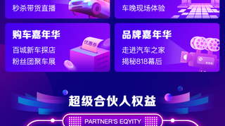 邀你入伙!818超级合伙人嘉年华,四大嘉年华创作主题活动,海量曝光、百万奖金、独家资源、明星网红,全部就位,等你加入共同打造汽车狂欢季。