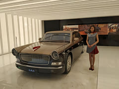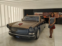 在车展上我们看到这款红旗L5。这是基于2009年红旗牌检阅车项目成功后,中国一汽正式启动红旗L平台产品开发及生产准备后打造的一款100%自主知识产权的E级轿车。红旗L5的造型延续了经典的红旗CA770的设计,红旗L5前脸的设计源自2009年国庆检阅车CA7600J,外观设计大气端庄,圆形的前大灯和前部流线型红旗立标是红旗汽车十分经典的设计元素。