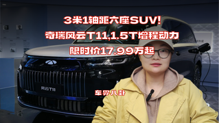 3米1轴距六座SUV!奇瑞风云T11,1.5T增程动力,限时价17.99万起