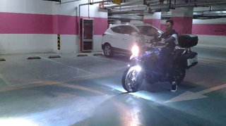 豪爵铃木DL250,加装一组射灯,在地库的表现还算可以!