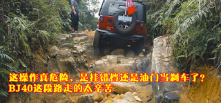 这操作真危险,是油门当刹车了?BJ40这段路走的太辛苦